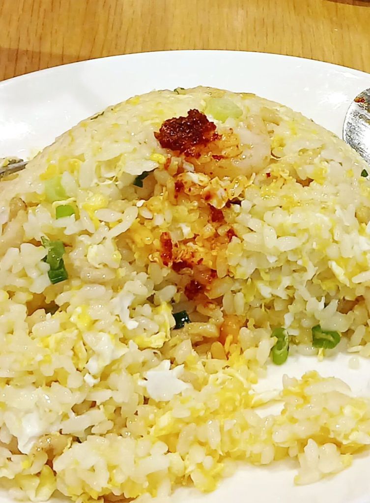 Nice prawn fried rice, I love the chilli sambal more!Red beans peanuts rice ballsPuer milk tea with red bean and sea salt cream and water melon juice ******The chilli sambal that made a difference to the fried rice