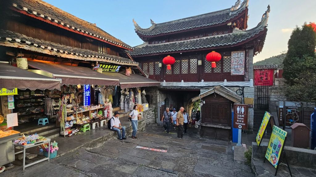 The sun was low in the horizon, when we arrived in Qingyan ancient town two days ago. This town was built as a military base, dating back to tbe Ming dynasy, under emperor Zhu Yuanzhang. It still appears as a walled city surrounded by mountains n moats.