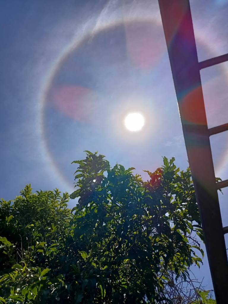 Today everybody was talking about the Saturn opposition. My sister sent me this picture of the sun above her house!