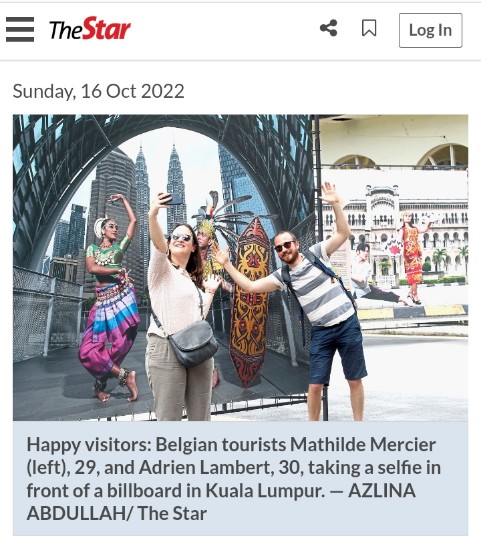 Now is the time to come… I like this front page picture… The two visitors look very much a part of the bill board! Weaker ringgit, a draw in tourism.. While the locals moan a weaker buying power of our ringgit, foreigners seem to enjoy a greater spending value of their countries’ dollar in Malaysia! Share this: Click to share on Facebook (Opens in new window) Facebook Click to share on LinkedIn (Opens in new window) LinkedIn Click to share on X (Opens in new window) X Click to share on Tumblr (Opens in new window) Tumblr Click to share on Pinterest (Opens in new window) Pinterest Click to email a link to a friend (Opens in new window) Email Like Loading... Related