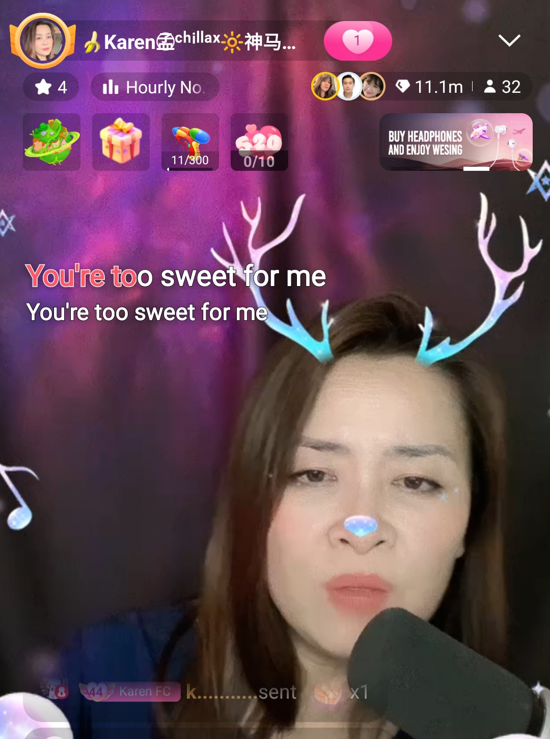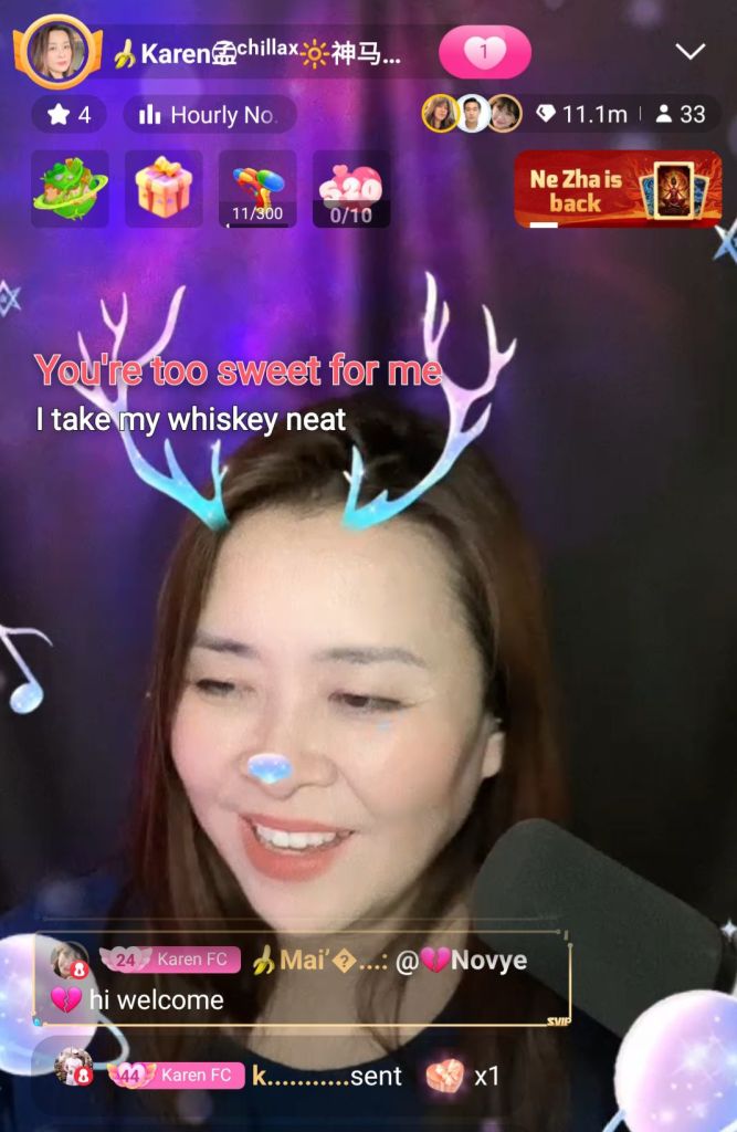 I sang a duet with this pretty lady, Karen. She had a melodious voice ( duet song- winner takes it all) until I heard her singing ‘Flowers‘, I realized she is quite a dynamite, too!